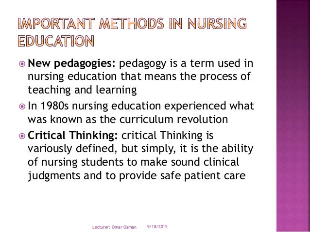 This chapter provides a descriptive account of nursing education including . how its past has shaped its present and how current times are influencing and delineating its future. Analyze curriculum and instruction in relation to learning nursing ... Retrieve Full Source